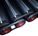 • Rodillos prensados o electrosoldados con tubo de acero, de piñones simples o dobles de acero adheridos al tubo o a un extremo del cuerpo.